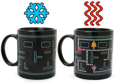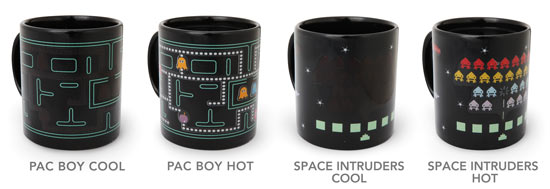 It’s the “Heat Changing Arcade Mug“. It’s here to show us the way to break the silence of the long gone 8bit graphics we’ve sometimes forget existed in our minds. Pour some cold milk in it and have some cookies and the game has just begun. The field on which you are about to battle for your life is initiated so to speak. Pour some hot coffee in that bad boy and you’re in full motion, bombs, enemies and all. This mug comes in two different games, Pac Man and Space Invaders.