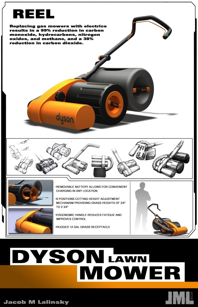 We can just hope that it will see the light of day for real and not just be on a piece of paper and in a 3D software. It’s far too cool to be left in the dust while we ferociously pollute our planet just because we’re too lazy to push a traditional man powered lawn mower. Get your butt of the chair and vote for this one. Send Jacob an email and tell him it’s awesome and that you want one. It’s worth it I tell you! (PS: This is a concept idea and has nothing to do with the company “Dyson“, who owns the trademark.)