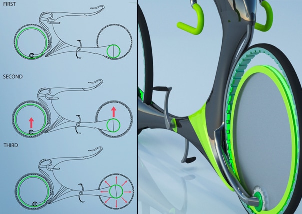 But, when I saw this new concept bike I lit up like a child in a candy store and I got that enormous adrenaline kick to just get out there and wheel around a bit. I would be the coolest kid in the town riding around on this bad boy called “Flying Bike“. I would be the Bike King!