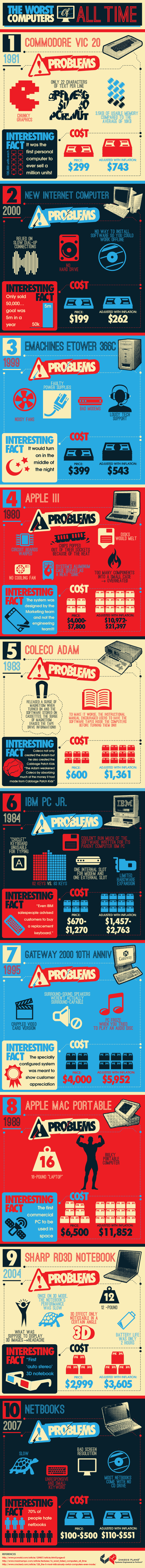 It’s easy to sit here and say that technology has always been great because of how fast it has evolved into what it is today. But the reality of technology is that there are way more failures than we might sometimes care to admit. Sure, there are devices and gadgets out there that are just stunningly great, but there are also plenty of innovations that don’t measure up to their reputation. This top 10 worst computers of all time infographic will shed some light on that.