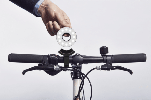 Answer: O-shaped bike lights magnetically attach to their mounts and to each other. You can then slip them through your D-lock when you lock your bike up.
