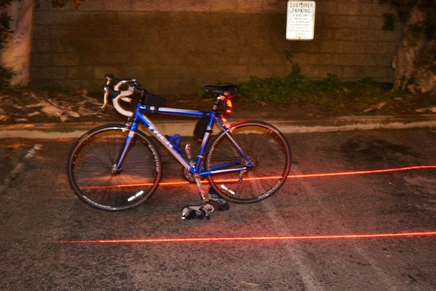 Answer: The Laserlight alerts vehicles of the unseen cyclist and prevents drivers from turning across their path. It gives the cyclist a bigger footprint on the road.