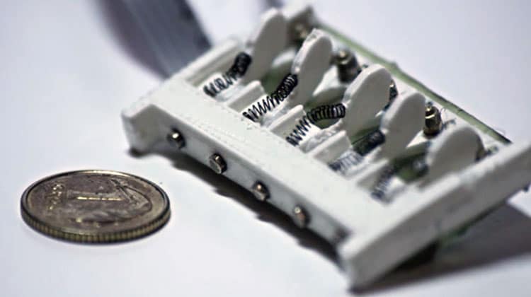 This tech touch communication bracelet uses Nitinol springs and quantum tunneling composite (QTC) for the touch sensor. What that means is instead of a motorized, unnatural touch feeling like a buzz, this bracelet will convey a touch that feels more organic and real. Of course, in order for this bracelet to work, it requires a Bluetooth Internet connection via smartphones.