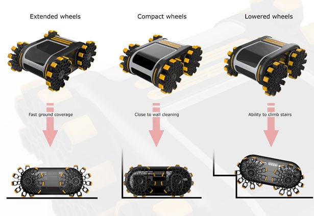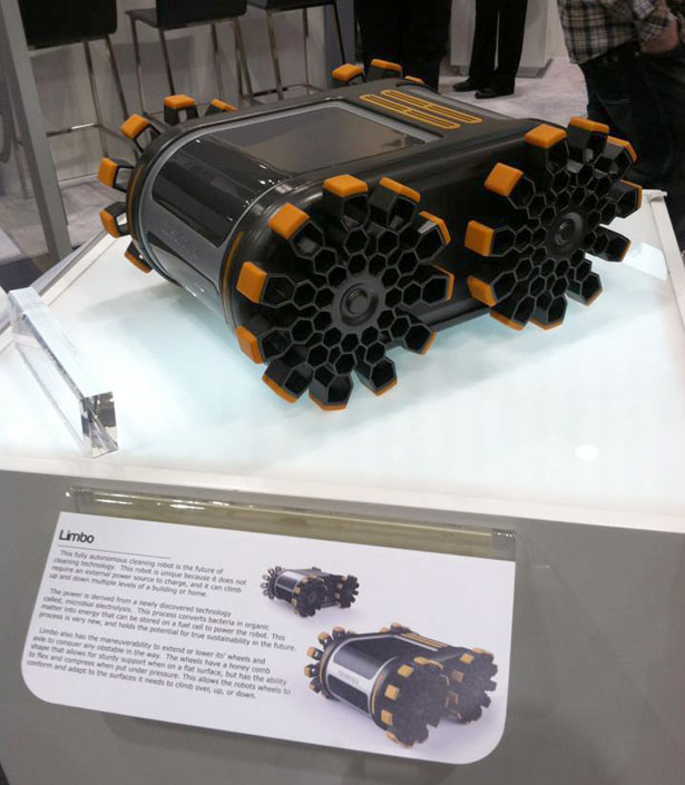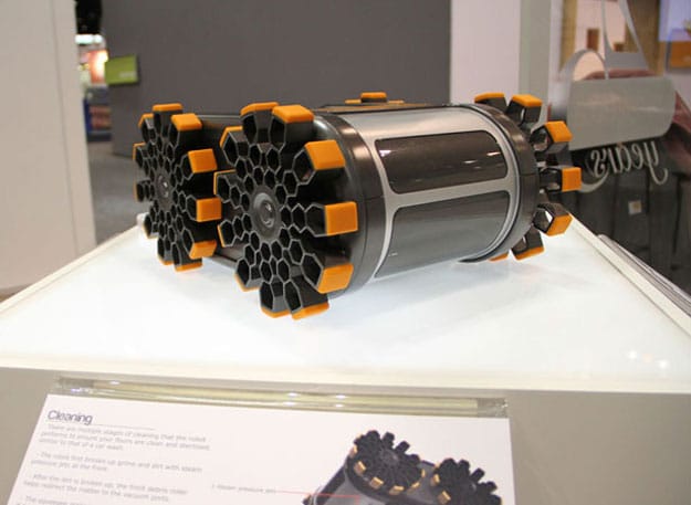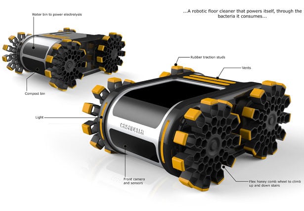 This particular cleaning robot concept design is especially interesting because it’s powered by trash. In other words, it’s sustained by utilizing the very substances that it cleans up. It uses a process called microbial electrolysis, which means it uses bacteria as its power source. The honeycomb design on the wheels allows this cutie to make its way all around your house, including over obstacles and up and down stairs.