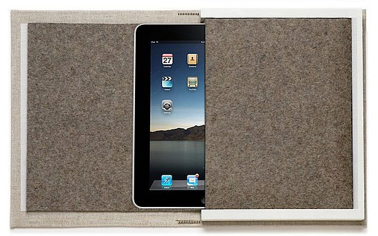 Another option is to get this handcrafted beautiful “book case” for your iPad or kindle. It is a hard case, made from natural materials, that looks like a book and tailored to hold your device. You can put your “book” on a bookshelf, on a coffee table or even in your car. Wherever you decide to store your gadget, it will be safe and sound inside this insulated case. The company that makes these also makes a case that fits your MacBook (see the picture below). I want one of each! Learn more about this at Long Live Books. To check out some other luxury iPad cases, click here.