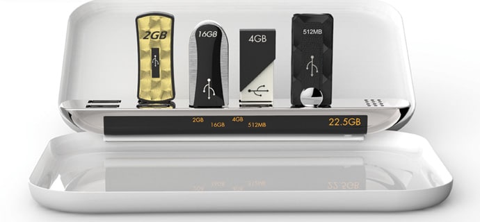 It’s a new concept design device by designers Lee Seungmin and Jin Juhyun called the Outdated USB Collector, and I think a lot of people could have a use for it. As our drawers fill up with old flash sticks, and we don’t know what to do with their available free storage space, this USB memory collector might come to our rescue. It could solve the problem by letting you plug in a ton of your USB flash sticks into it, and then let them all count as one big drive of free storage space. It’s pretty genius, right?
