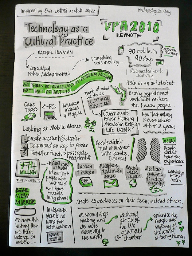 Now back to Amanda Wright, the designer who created these notes. She calls this style of note taking sketchnoting. Amanda, if I ever need a user experience designer, I’m calling you. These are fabulous, and I learned a lot from reading them. If you would like to check out an interview with Amanda, click over to My Modern Met. Thank you for sharing your notebook with everyone!