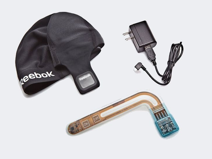 The indicator light glows green if the hit to the head was non-threatening. It glows yellow if it was a moderate impact, and it glows red if it’s time to get to a doctor. It is a battery-powered device that is recharged via USB. You can purchase it here on the Reebok website. It will soon be available in a headband version also, which seems a lot better than this big hat thing.